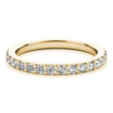 Elegant and stylish, this beautiful Allegra Diamond Wedding Ring is a pave/prong set ring with diamonds on the band. This ring is available in a variety of gold types and platinum 950 and is custom made to order.