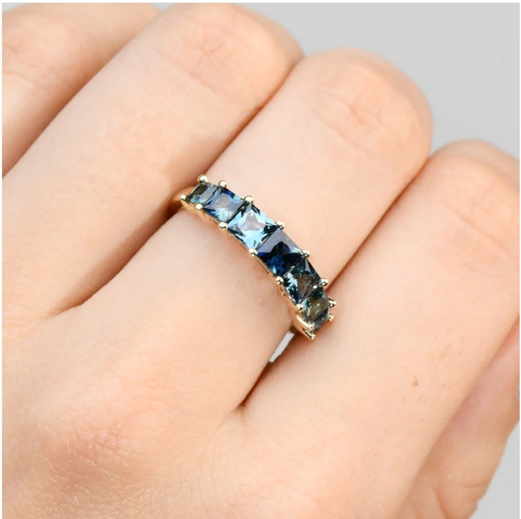 The Aria Ring is a vibrant celebration of colour, featuring seven Australian sapphires set to create an effortless statement. Perfect as a dress ring or a pop of colour in everyday style, it is available in a variety of sapphire options to suit your personal taste.