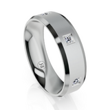 Stylish and contemporary, this impressive Bevelled Edge Brushed Centre Diamond Platinum Wedding Ring is bound to impress. This ring is available in Platinum 600 or Platinum 950 and is custom made to order.