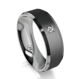 The Black Zirconium and Grey Zirconium Bevelled Edge Diamond Wedding Ring showcases a stylish twist on a classic ring.