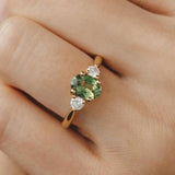 Our beautiful Charlotte Oval Engagement ring setting featuring a 1.47 ct Australian Light Green certified oval Sapphire is beautifully set in a yellow gold solitaire band that exudes such stunning elegance.