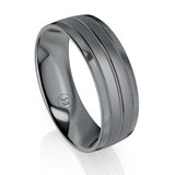 Stylish, Rugged and Masculine this impressive Double Banded Centre Tantalum Wedding Ring is available with a double brushed centre and with a choice of edge polishing options.