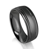 The Dual Grooved Black Zirconium Wedding Ring adds a stylish addition to a classic ring.