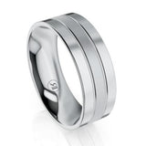 Dual Grooves Brushed Centre Platinum Wedding Ring