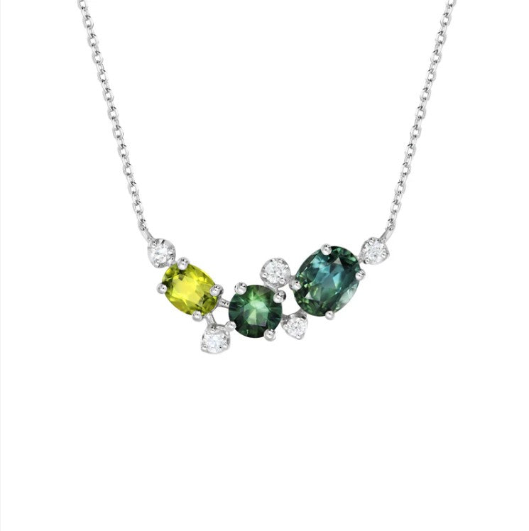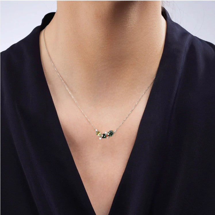 Beautiful and unique, the Estrella necklace features a delicate arrangement of multi-coloured Australian sapphires, set elegantly on an 18ct gold chain. A striking piece that adds colour and sophistication to any look.