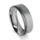 The Grey Zirconium Grooved and Black Zirconium Edged Wedding Ring adds a stylish addition to a classic ring.