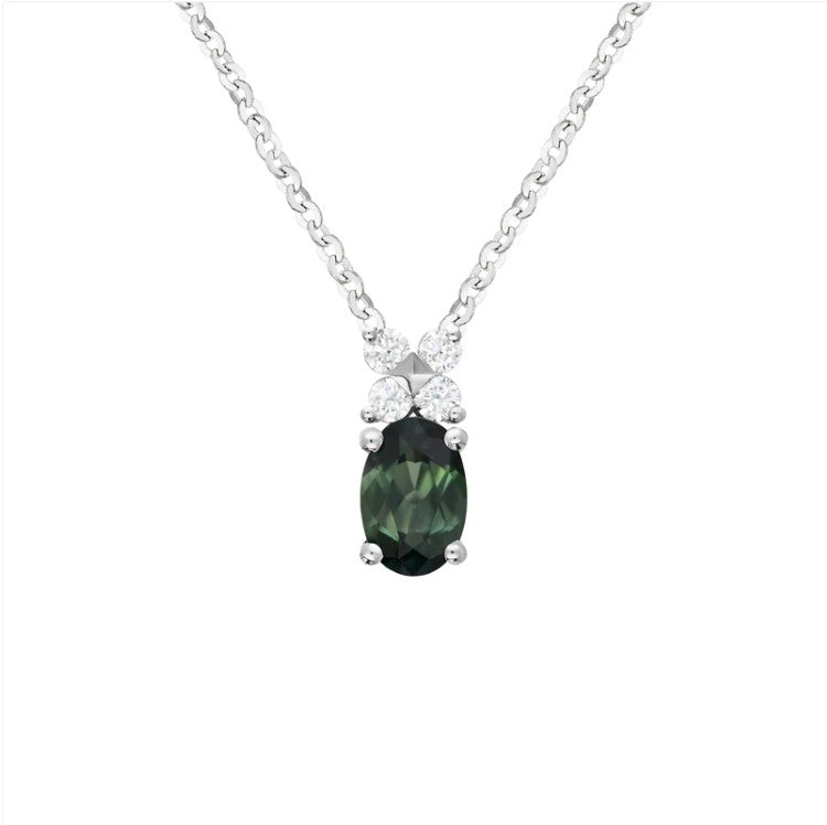 The Holly Necklace showcases an exquisite Australian sapphire, beautifully complemented by four sparkling white diamonds for a touch of everyday elegance. Designed for effortless daily styling, this necklace brings refined sophistication to any outfit.