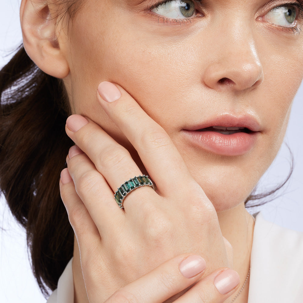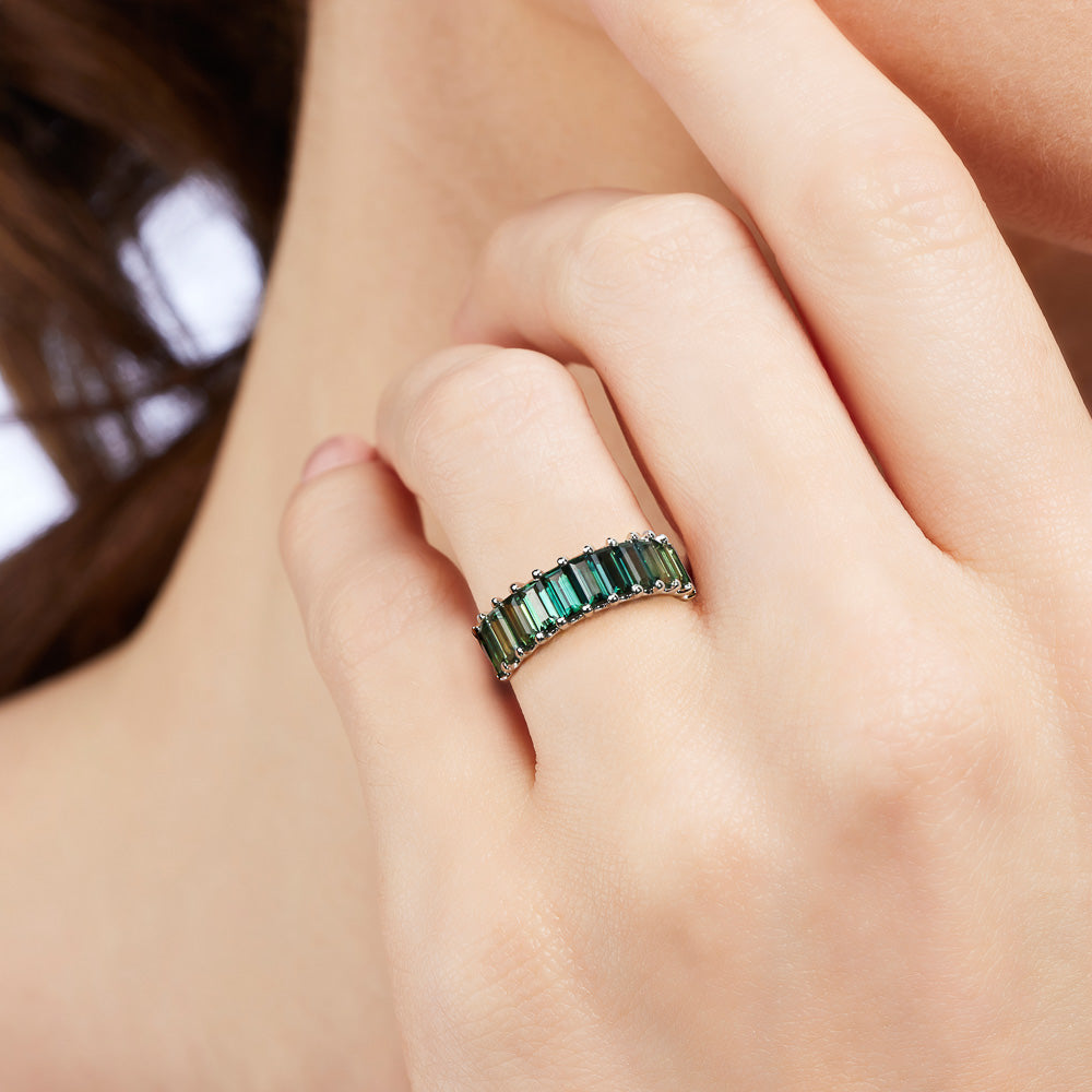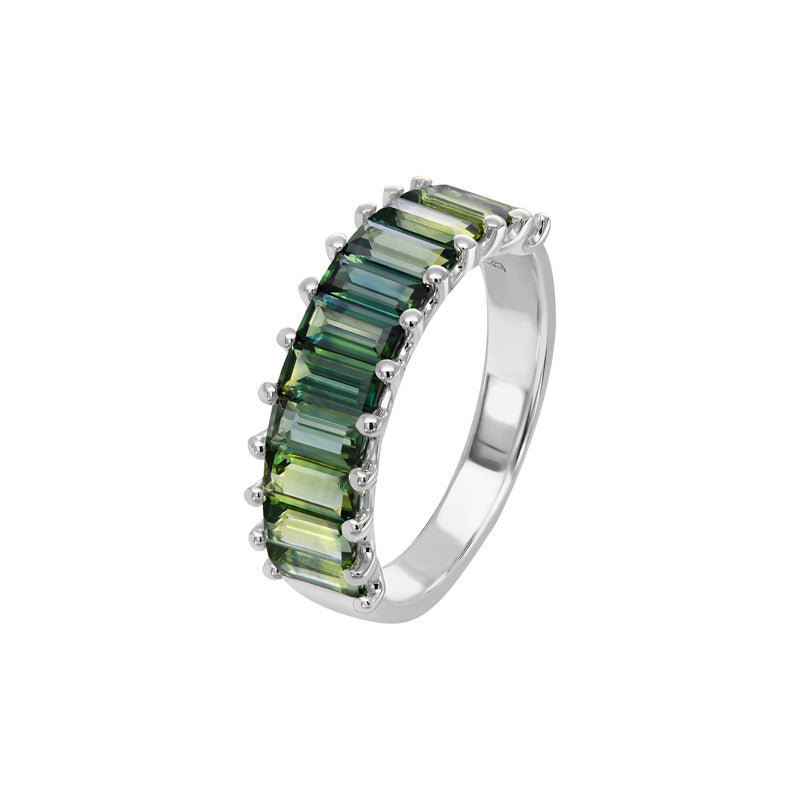 The Lennox Ring showcases a striking row of baguette-cut Australian sapphires, set gracefully in 9ct yellow gold. Bold yet sophisticated, this modern design celebrates colour, craftsmanship, and understated luxury.