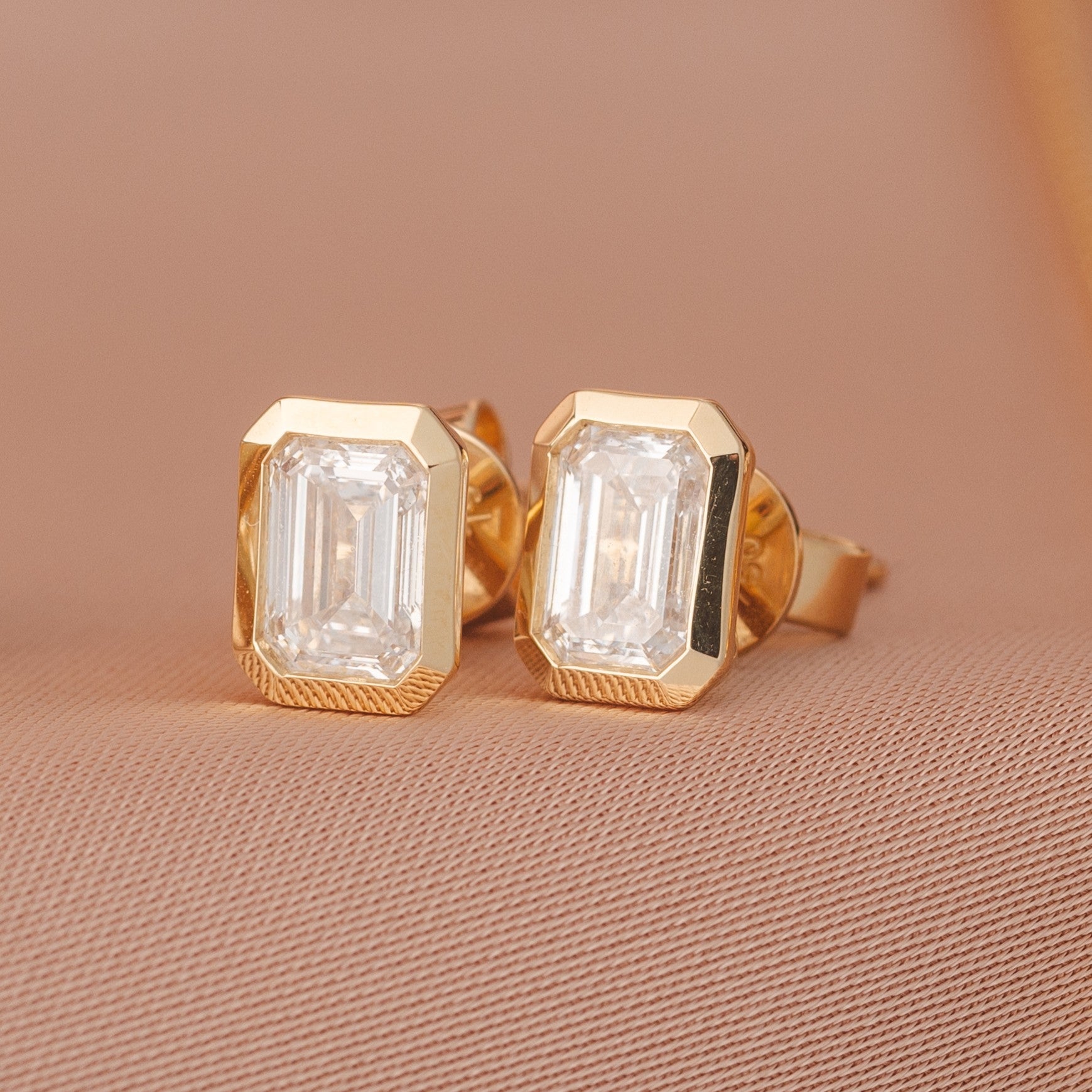Radiating understated elegance, our bezel diamond earrings are a modern take on a timeless classic. Each brilliant-cut diamond is encased in a smooth, polished bezel setting that enhances its sparkle while offering everyday wearability.