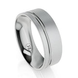 Stylish, Rugged and Masculine this impressive Offset Stripe Platinum Wedding Ring is available in both Platinum 600 & 950 options.