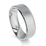 Stylish and contemporary, this impressive Polished Rounded Edges Brushed Centre Platinum Wedding Ring is bound to impress. This ring is available in Platinum 600 or Platinum 950 and is custom made to order.