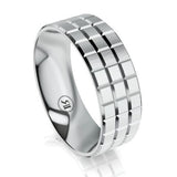Stylish and contemporary, the great looking Aspen Platinum Notched Wedding Ring features multiple faceted grooves revealing a stylish look. This wedding ring is made to order and available in Platinum 600 or Platinum 950 options.