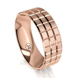 Stylish and contemporary, the great looking Aspen Rose Gold Notched Wedding Ring features multiple faceted grooves revealing a stylish look. This wedding ring is made to order and available in 9 or 18 Carat Gold options.