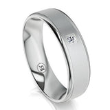 Stylish and contemporary, the impressive looking Astley White Gold ring features a diamond in the centre of the band (.05ct - 2.3mm). This ring is made to order and available in 9 or 18 carat Gold options.