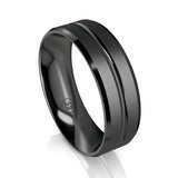 The Brushed Black Zirconium and Polished Grooved Bevelled Edge Wedding Ring adds a stylish addition to a classic ring.