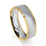 Stylish and contemporary, The Dunkirk is an impressive ring features a slightly raised Brushed Platinum centre with your choice of gold inlay and edges, showcasing a stylish looking ring.