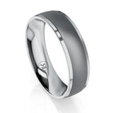 Stylish and contemporary, The Dunkirk is an impressive ring features a slightly raised Brushed Tantalum centre with Platinum inlay and edges, showcasing a stylish looking ring. This ring is made to order.