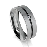The Grey Zirconium with Black Zirconium Grooved Diamond Wedding Ring - Comfort Fit (IN1621D)