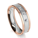 Stylish and contemporary, the impressive looking Griffin Two Tone Gold (with White Gold Inner) features three round diamonds (3 x .03 ct - 1.9mm) on the band. This ring is made to order and available in 9 or 18 carat Gold options.