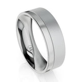 This ring features a brushed white gold section with polished white gold edge. Pictured here is a 6.5mm width and this ring comes with a standard 1.6mm thickness.