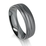 Stylish and contemporary, the impressive looking The Ludlow Tantalum Wedding Ring features a stylish offset double grooved pattern around the ring. This Wedding Ring is made to order.