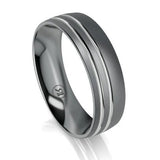 Stylish and contemporary, the impressive looking The Ludlow Tantalum and White Gold Wedding Ring features a stylish offset double grooved pattern around the ring. This Wedding Ring is made to order.
