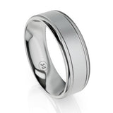 Stylish and contemporary, this impressive Otis Platinum Wedding Ring is bound to impress. This ring is available in Platinum 600 or Platinum 950 and is custom made to order.