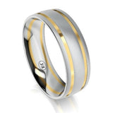The Salisbury White and Yellow Gold Grooved Mens Wedding Ring