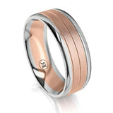 The Theodore White and Rose Gold Dual Grooved Mens Wedding Ring by Infinity