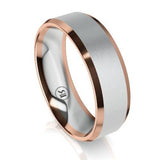 The Vanguard White and Rose Gold Bevelled Wedding Ring