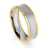 Stylish and contemporary, The Winchester is an impressive ring features a slightly raised Brushed Platinum centre with your choice of polished gold edges, showcasing a stylish looking ring.