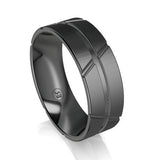 The Zigzag Groove Black Zirconium Wedding Ring adds a stylish addition to a classic ring.