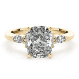 This beautiful Willow Elongated Cushion Cut Diamond Engagement Ring setting comes with 4 round side diamonds and 2 marquise side diamonds in a classic four claw setting. This ring setting does not include the centre oval diamond which can be purchased separately based on your specific requirements.