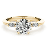 This beautiful Willow Trilogy Round Brilliant Cut Diamond Engagement Ring setting comes with 4 round side diamonds and 2 marquise side diamonds in a classic four claw setting. This ring setting does not include the centre diamond which can be purchased separately based on your specific requirements.